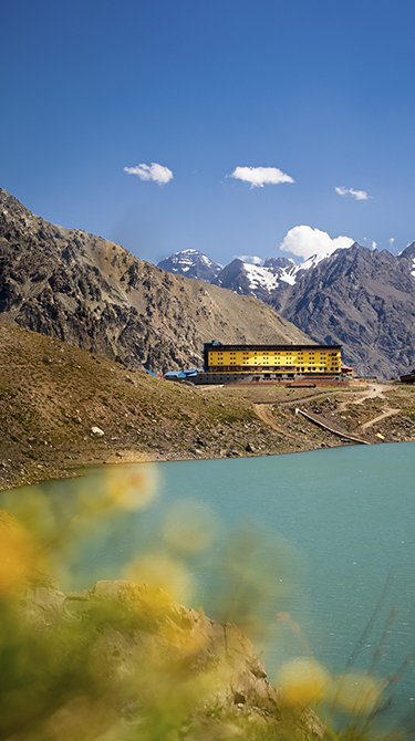 Ya sea desde el hotel o sobre tus esquís, podrás disfrutar de una maravillosa vista hacia la Laguna del Inca y las montañas de la Cordillera de los Andes.